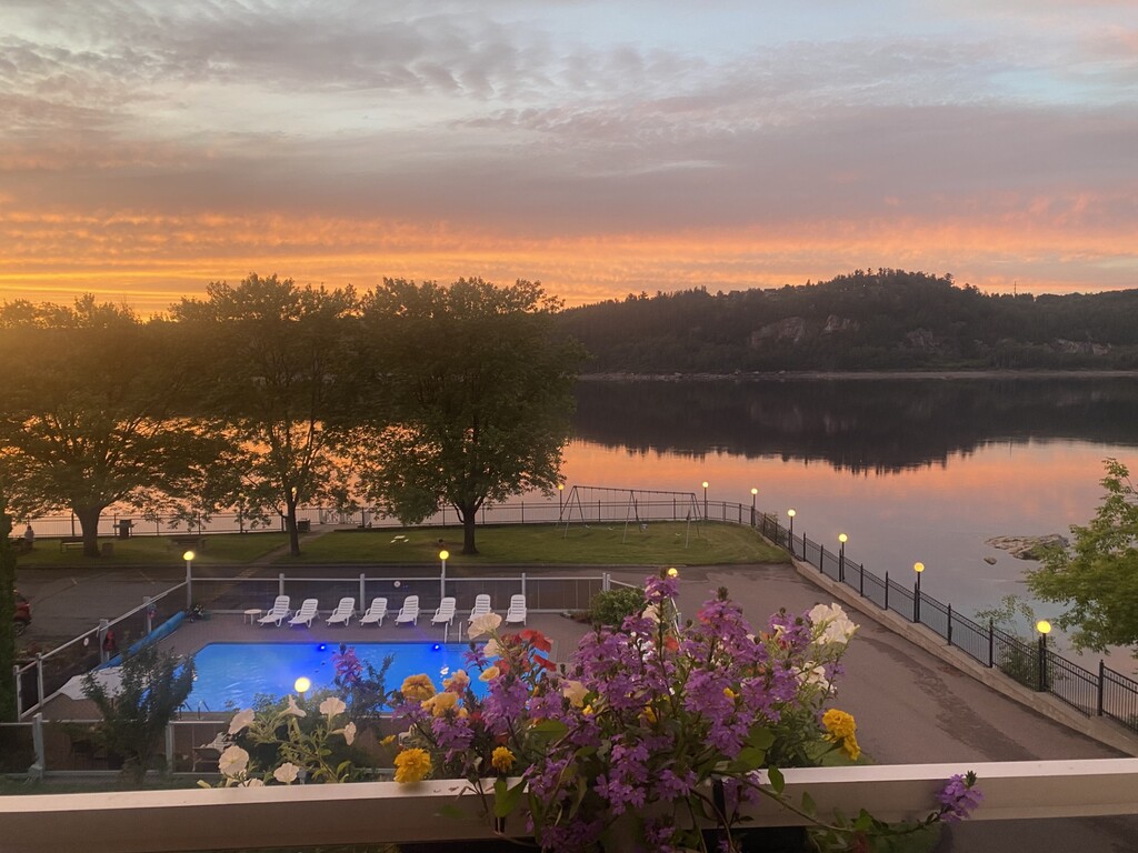 Nos chambres avec deux lits les plus grandes et face à la rivière. Ces chambres sont situé au rez-chaussée sur le stationnement au même niveau que la rivière et la piscine.